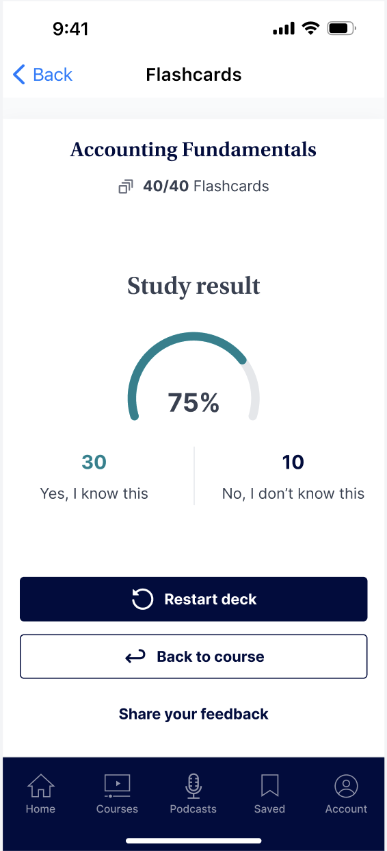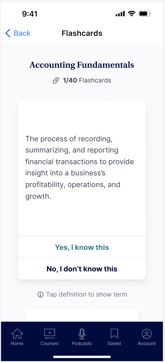 Available in select courses within CFI’s mobile app, flashcards make it easy to study on the go—whether you have a few minutes between meetings or want to reinforce concepts before taking a course or a Qualified Assessment.