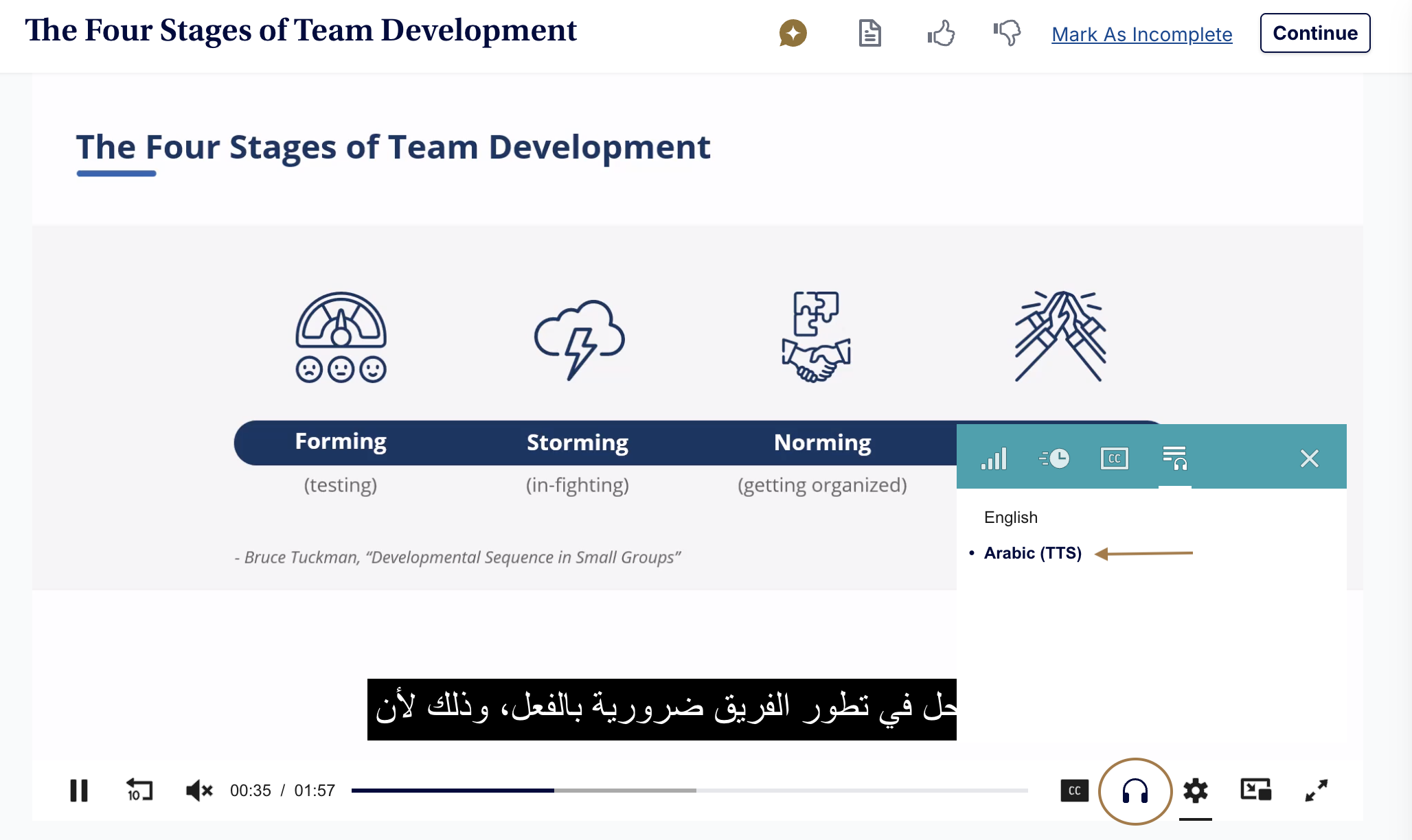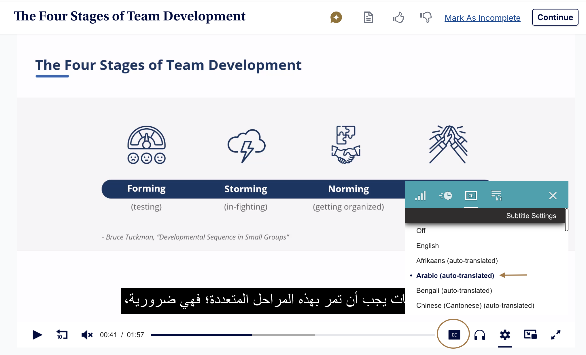 - Your video will now play in your selected language, unless you click this icon again to select a different language.
